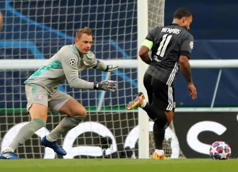 Memphis Depay fired wide and Toko Ekambi hit the post for Lyon in the opening 15 minutes before Serge Gnabry calmed Munich nerves with two first-half goals.