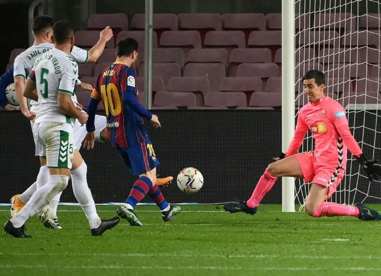 The first came from a breathtaking run from De Jong, who dribbled forward from the halfway line, past three Elche defenders, before cutting back for Messi. He glided past two more and prodded in.