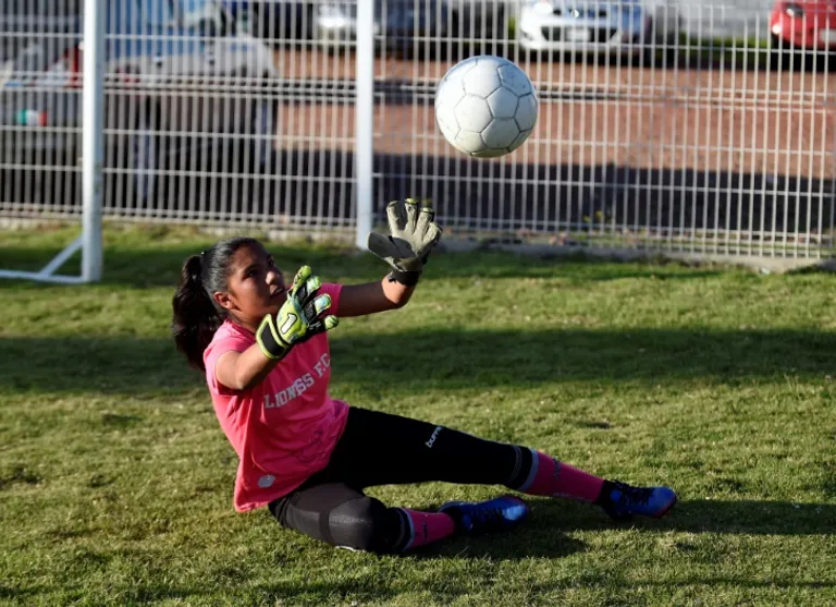 She is the star keeper for Lioness FC, in the city of Metepec.