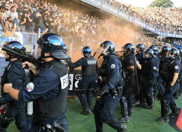 French riot police quickly restored order, while Montpellier president Laurent Nicollin intervened in a bid to restore calm.