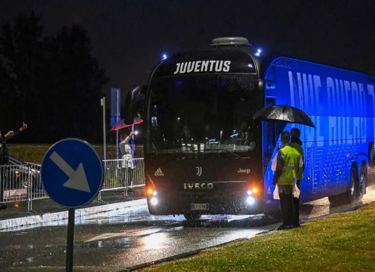 Juventus players arrived at the stadium about an hour before kick-off.