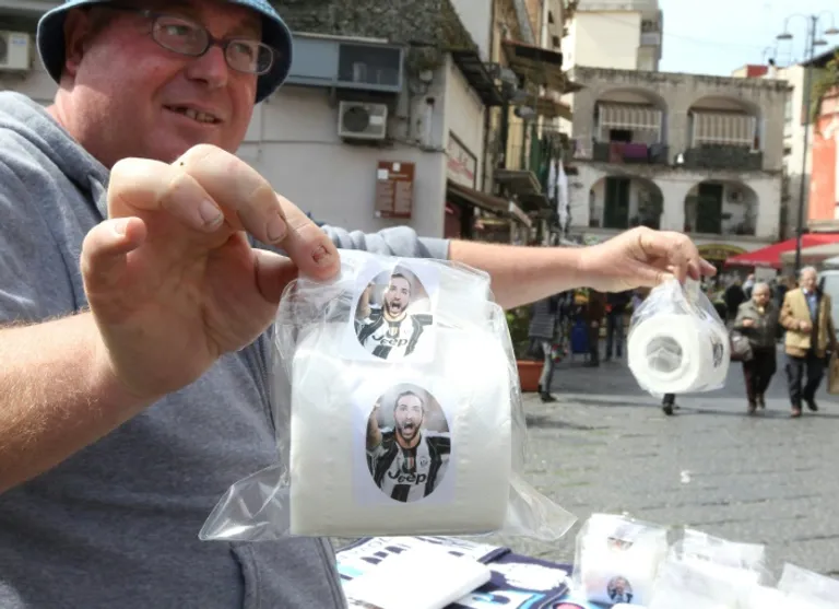 Higuain features prominently with his face on toilet rolls, dressed in his Juventus shirt with salacious insults written beneath