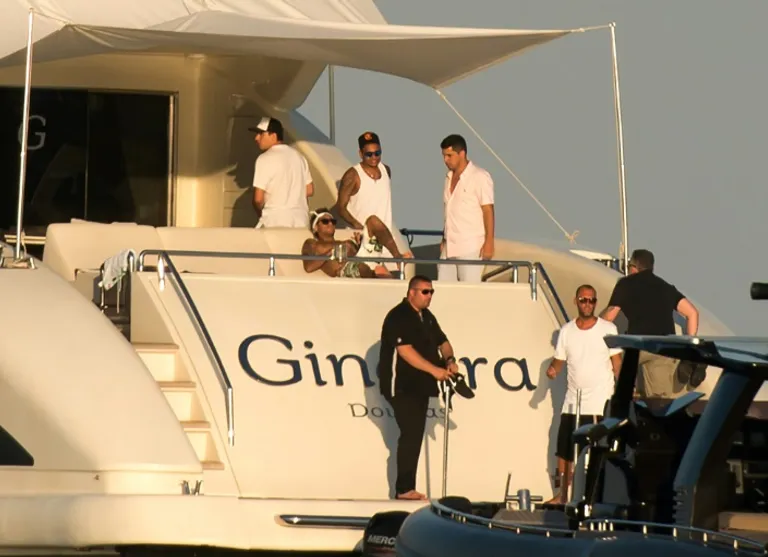 Neymar spent five hours enjoying “La Bagatelle” beach before being whisked off in a Zodiac inflatable boat towards a luxury yacht with seven of his friends and bodyguards, followed by another boat carrying a further ten revellers.