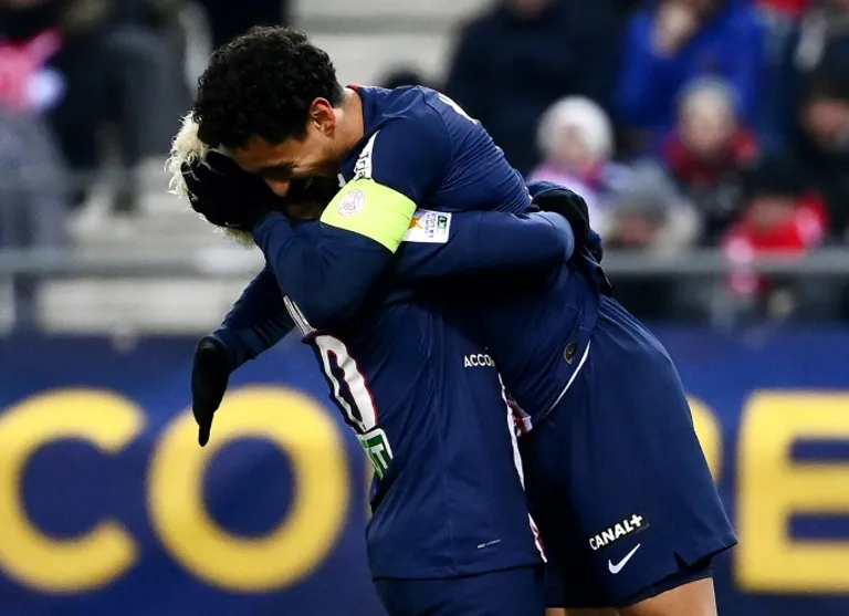 Neymar and Kylian Mbappe, who were unused substitutes as PSG won in the French Cup at Lorient on Sunday, started while Mauro Icardi and Angel di Maria who began that game, shivered on the bench on a below-freezing evening in Champagne country.