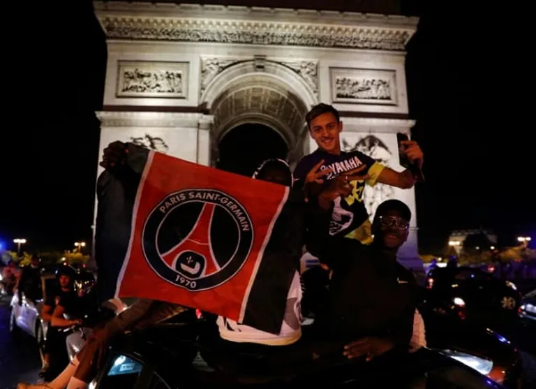 Thousands of PSG fans, often very young and for the most part not wearing masks in line with coronavirus health and safety protocols, paraded down the Champs-Elysees in cars, and on mopeds and scooters, in a cacophony of horn-blowing and chanting.