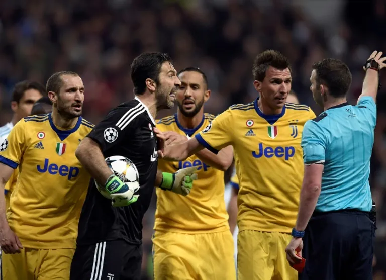 Buffon was sent off for dissent in the final minute of the quarter-final, second leg in Madrid after confronting English referee Michael Oliver over his decision to award the hosts a penalty in time added-on.