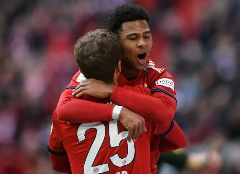 Gnabry gave Bayern the lead on 34 minutes at the Allianz Arena by tapping home Mueller’s cross, then turned provider three minutes later when he served up a simple tap in for Lewandowski to make it 2-0.