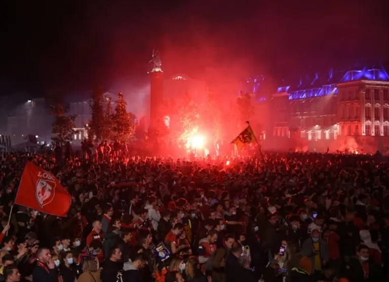 The fans gathered in the northern French city after Lille won at Angers to clinch the title in their last game of the season on Sunday night.