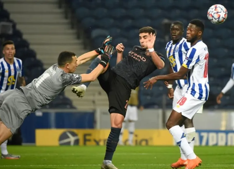 Marchesin denied the visitors again with a superb save from Torres’ overhead kick after City defender Ruben Dias accidently cleared Sterling’s effort off the Porto line.