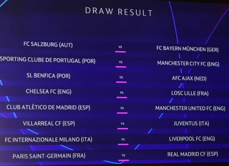 Salzburg instead got Bayern Munich, while Manchester City take on Sporting Lisbon and Benfica will play Ajax.