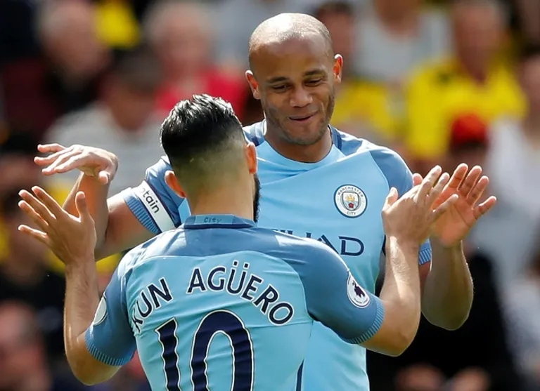 Needing a point to be certain of qualifying for the Champions League, Vincent Kompany put Pep Guardiola’s side ahead after only five minutes at Vicarage Road.