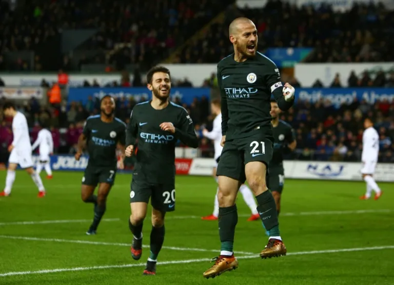 City reached the milestone with a ruthless 4-0 victory at Swansea City on Wednesday, which preserved their massive 11-point lead at the Premier League summit.