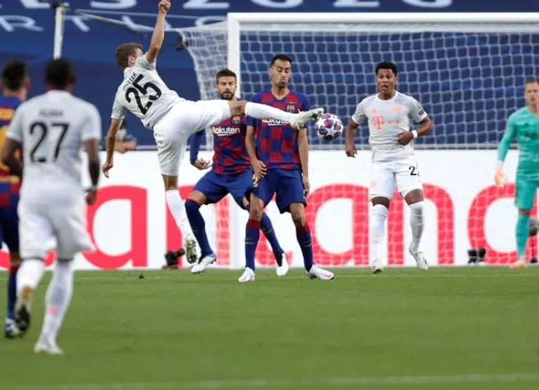 Mueller made it 4-1 on 31 minutes when he fired in Joshua Kimmich’s low cross at the far post to leave Barcelona shell-shocked at the break.