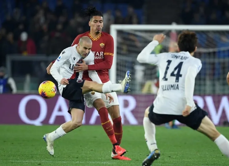 Riccardo Orsolini took advantage of an error by English defender Chris Smalling to grab a 16th-minute advantage for Bologna at the Stadio Olimpico, before Stefano Denswil’s dreadful own goal drew Roma level just six minutes later.