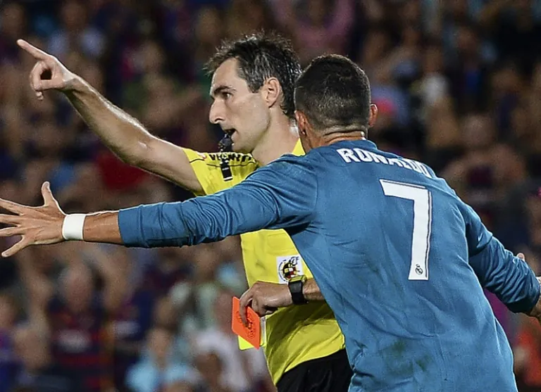 The World Player of the Year was controversially shown a second yellow card for diving on Sunday and handed an extra four-game ban for a light push on referee Ricardo de Burgos Bengoetxea after being shown the 10th red card of his career.