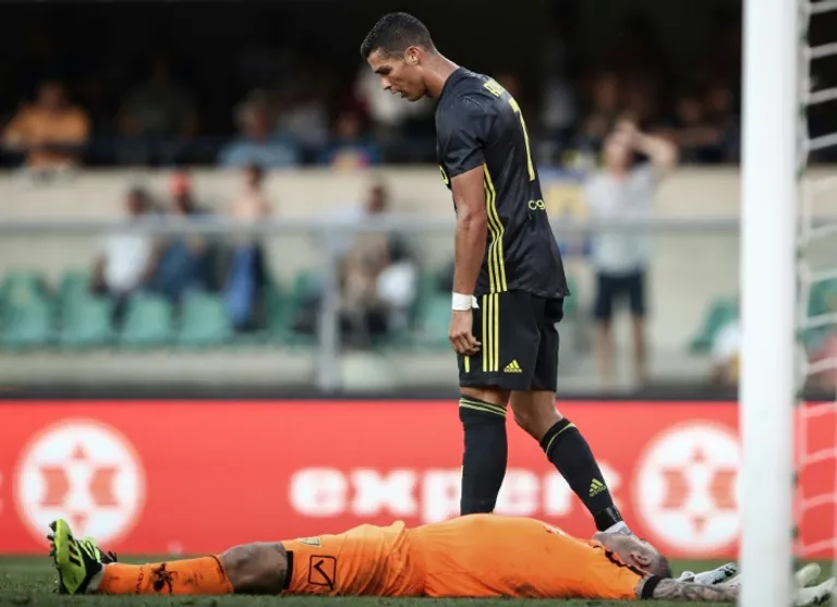 Verona (Italy) (AFP) – Cristiano Ronaldo may not have scored in his Serie A debut for Juventus but he got a “bullseye” joked Chievo goalkeeper Stefano Sorrentino who suffered a broken nose and whiplash after being knocked out in a clash with the Portuguese superstar.