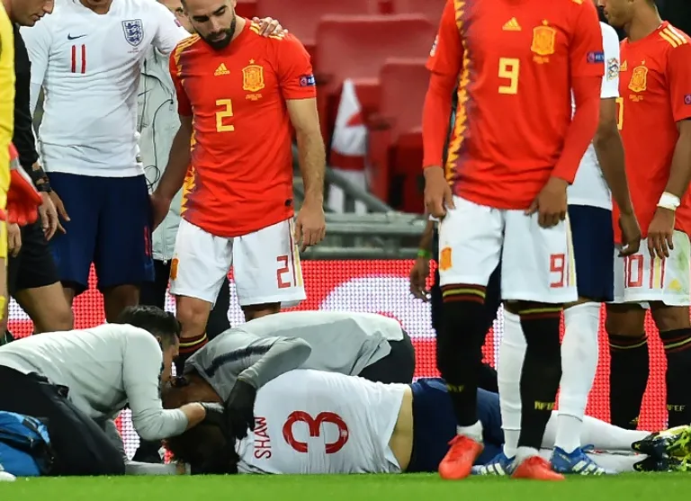 A statement from the Football Association read: “Luke Shaw remained at St. George’s Park today for further rest and monitoring having sustained concussion against Spain yesterday. He will return to his club tomorrow.”
