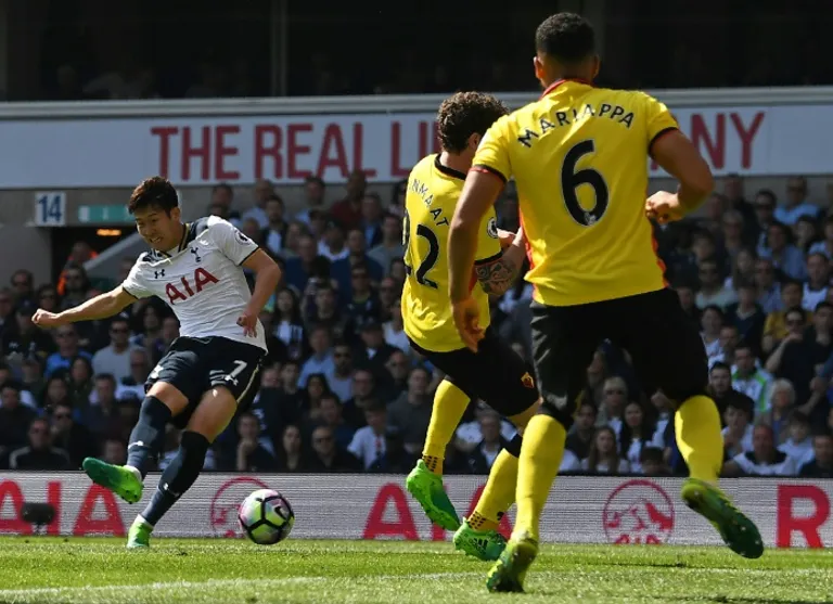 Son struck either side of half time — a left-foot curler followed by an adroit right-foot volley — and spurned two chances to complete his hat-trick.