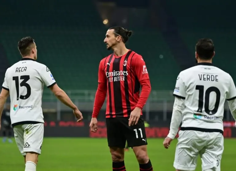 In the 44th minute, Rafael Leao escaped behind the Spezia defence but was flattened by goalie Ivan Provedel kicking wildly at the bouncing ball.