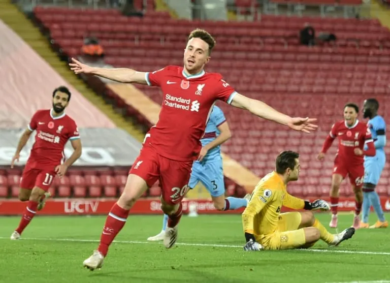 Liverpool (AFP) – Diogo Jota came off the bench to score the winner five minutes from time as Liverpool came from behind to beat West Ham 2-1 and move three points clear at the top of the Premier League on Saturday.