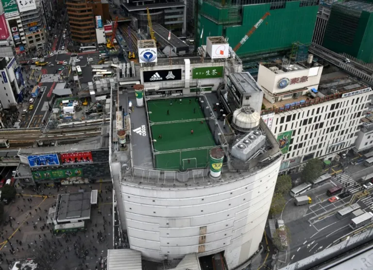 In New York’s Brooklyn, footballers play by the waterside with the Statue of Liberty for backdrop. Seoul’s nightlife includes a pitch ablaze with light on a rooftop above a shopping centre.