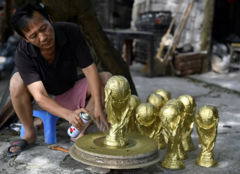 Hanoi (AFP) – In a dusty workshop on the outskirts of Hanoi, workers busily mould, set and spray hundreds of replica World Cup trophies as orders flood in ahead of next week’s tournament.