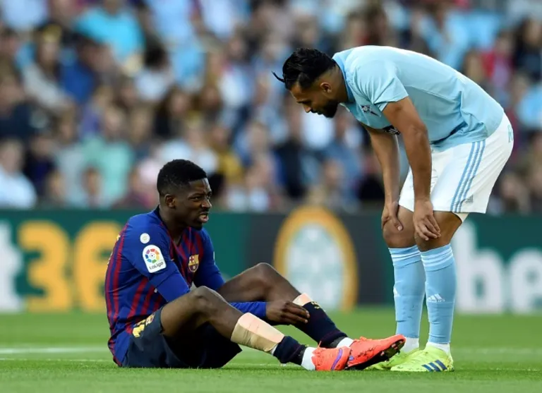 The club later confirmed Dembele sustained a hamstring injury and will undergo tests on Sunday but it seems unlikely the Frenchman will be fit to face Liverpool in the semi-final second leg.