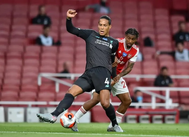 But Van Dijk’s slack pass allowed Alexandre Lacazette to equalise before Alisson Becker also produced a rare mistake to allow Lacazette to tee up Reiss Nelson for the winner just before half-time.