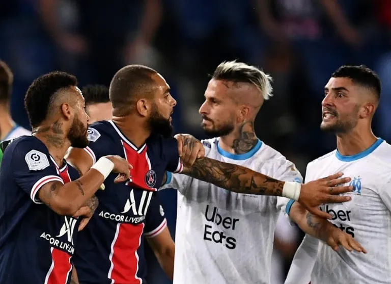 Marseille’s 1-0 victory over PSG in Ligue 1 in September was marred by five red cards, Angel Di Maria spitting at Marseille centre back Alvaro and Neymar accusing the same opponent of racism.