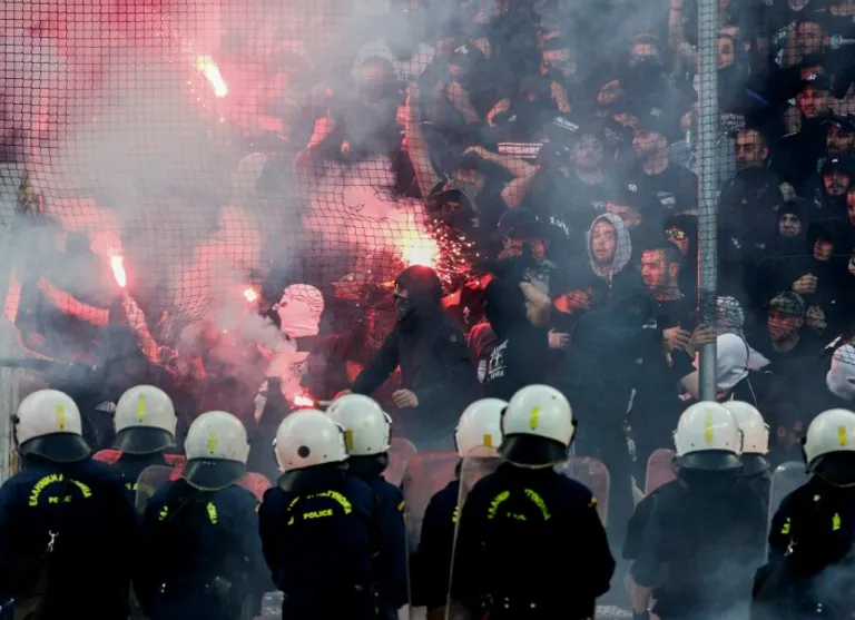 Athens (AFP) – Violent clashes between PAOK Thessaloniki and AEK Athens fans marred Saturday’s Greek Cup final at the Olympic Stadium, with two PAOK fans reported injured after a Molotov Cocktail was thrown inside their van.