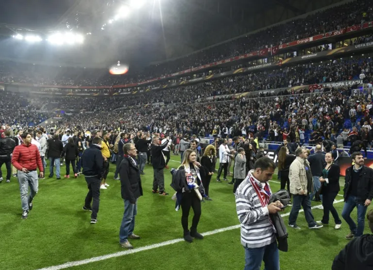 Lyon (AFP) – Fans poured onto the pitch at the Europa League clash between Lyon and Besiktas on Thursday, delaying the start of a violence-hit, high-risk match as European football suffered another body blow.