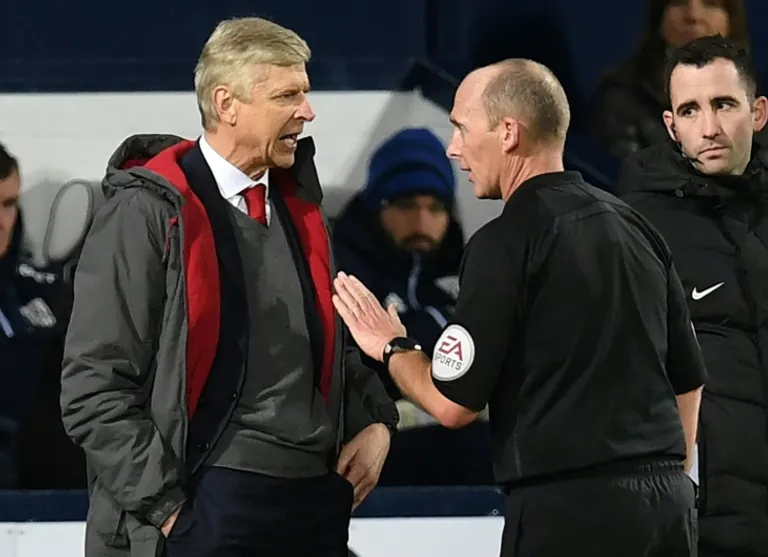The 68-year-old Frenchman reacted furiously to referee Mike Dean’s decision to award a penalty to West Brom in the 89th minute for handball by Calum Chambers.