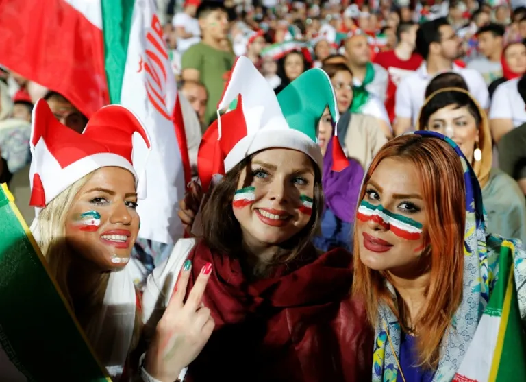 Cheering and with their cheeks painted with the national colours, women showed they were just as caught up in the World Cup fever sweeping the country as they seized the opportunity to attend a live screening at the 100,000 capacity Azadi (Freedom) Stadium, which, like other sports arenas, has been off-limits to them since the the Islamic revolution of 1979.