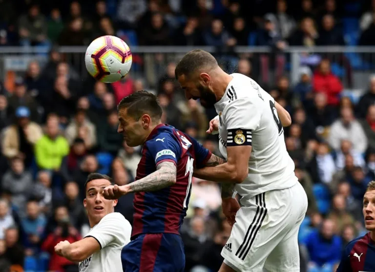 Karim Benzema scored twice at the Santiago Bernabeu as Madrid came from behind after Marc Cardona, starting only after an injury to Pedro Leon in the warm-up, gave Eibar a surprise lead.