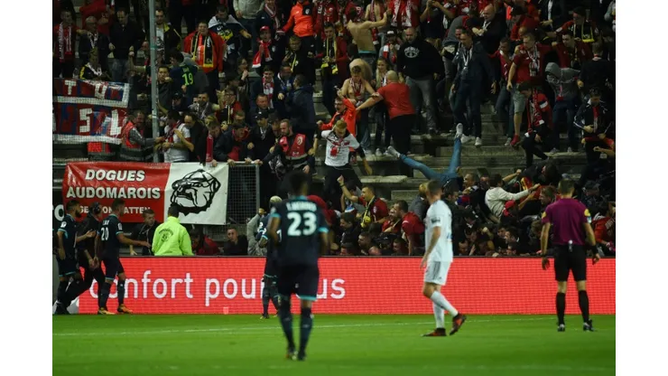The Ligue 1 fixture between Amiens and Lille was suspended in the 16th minute, and later abandoned, after a fence separating fans from the pitch crumbled under their weight as they celebrated a goal by Fode Ballo-Toure.