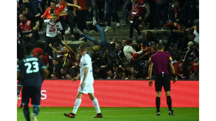 The incident happened when Lille’s Fode Ballo-Toure ran towards the section of visiting fans after scoring the opening goal, prompting a surge that caused the barrier to give way.