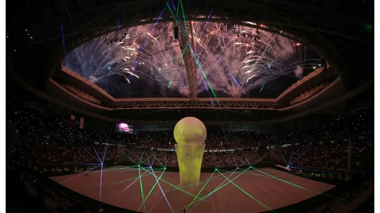 It was plunged into darkness for the pre-match show and performers assembled around a giant illuminated inflatable pearl on the centre of the manicured pitch.