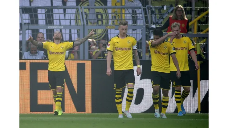 Dortmund were denied by a brilliant double save from goalkeeper Lukas Hradecky early on before Alcacer gave them the lead just before the half-hour mark.