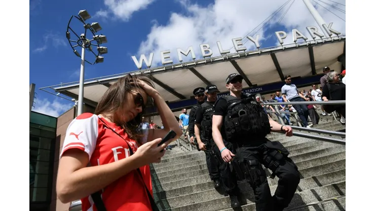 Black-clad police officers carrying large guns could be seen outside Wembley Park underground station in northwest London, while black armoured police trucks were parked discreetly beside the roads leading to the stadium.