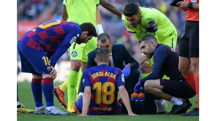 Madrid (AFP) – Barcelona left-back Jordi Alba hobbled off in the 20th minute of the Spanish champions’ La Liga game against Getafe on Saturday with an apparent right thigh injury.