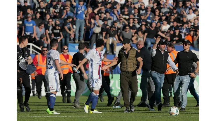 Riot police later fired tear gas to disperse a mob of Bastia fans waiting for the Lyon team coach to leave the stadium.