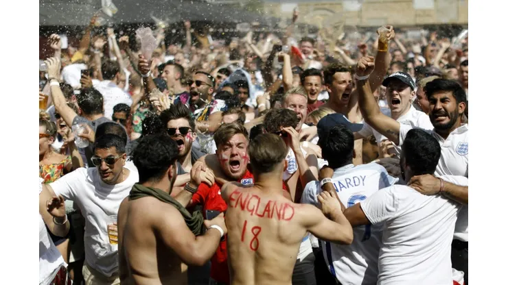 In Flat Iron Square, in scenes mirrored across the country, many had the England flag — Saint George’s red cross on white — painted on their cheeks, and while many men wore replica England shirts, many more stripped off in the baking 30 degrees Celsius (86 degrees Fahrenheit) heat.