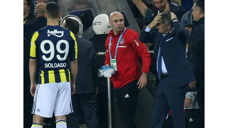 The incident happened after a row erupted between Fenerbahce fans and Besiktas players on the bench.