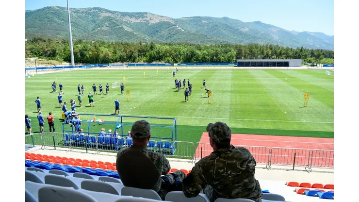 In Gelendzhik, people gathered on a hill overlooking the stadium to see the Swedes in the flesh.