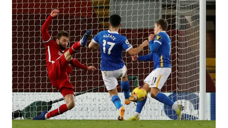 Burn, on the left side of the Liverpool area, headed a cross-field ball back across goal and Alzate combined with Leandro Trossard to steer the ball into the net.