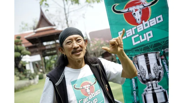 Bangkok (AFP) – On Sunday evening an ageing Thai rock star with hooped earrings, signature bandana and a wispy moustache will be at the home of English football to present the Carabao Cup to either Arsenal or Manchester City.