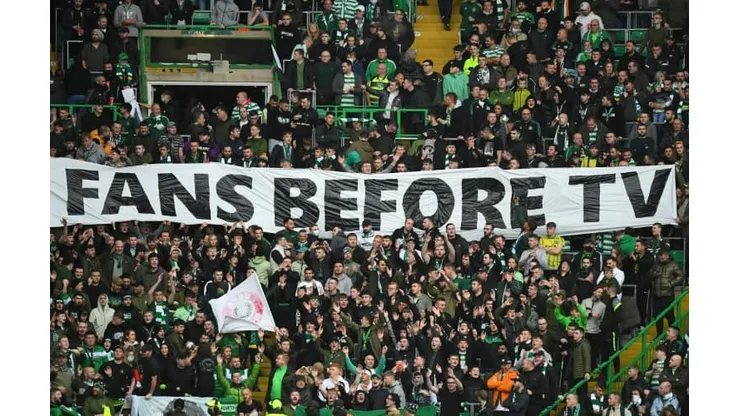 Celtic fans protested with a banner directed at UEFA to pay more attention to match-going fans than television rights deals.