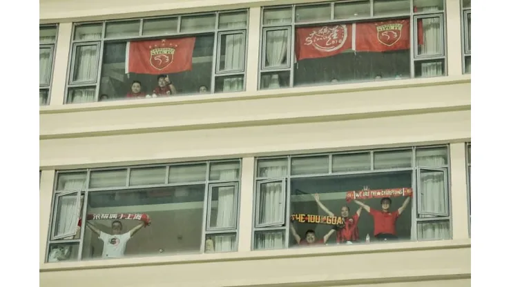 One SIPG fan was pictured banging a drum out of an open window.