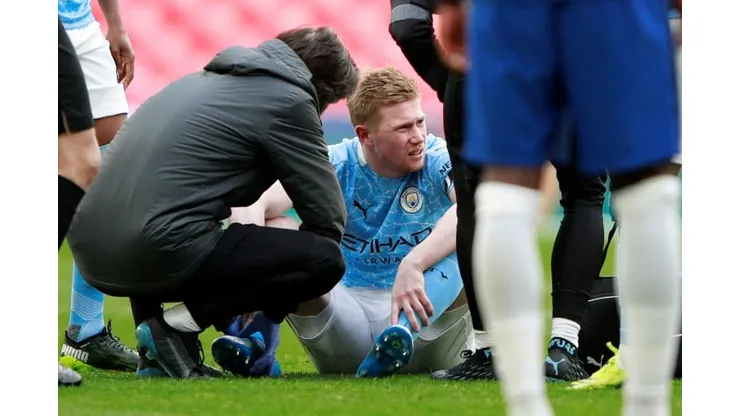 The Belgium playmaker came off worst in a challenge with N’Golo Kante just two minutes into the second-half and hobbled off to be replaced by Phil Foden.