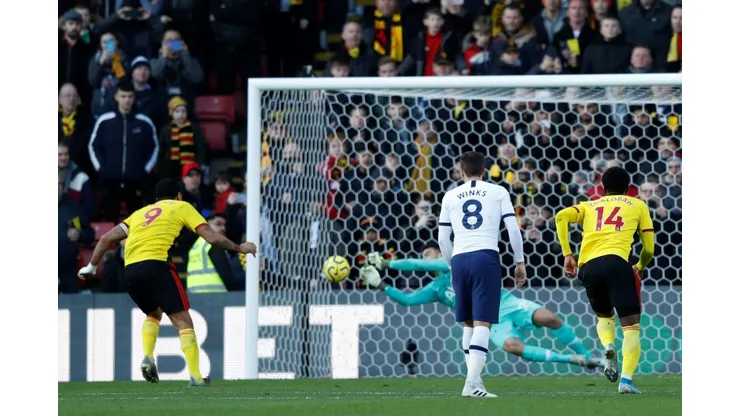 Deeney stepped up and struck his shot firmly but Gazzaniga dived to his right to keep the ball out.